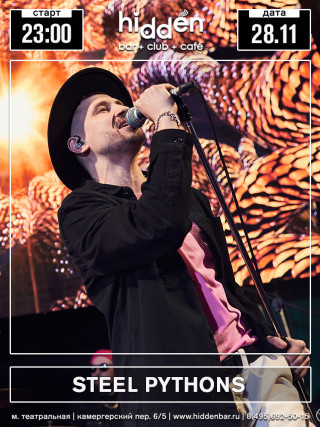 Стильная кавер-группа Steel Pythons играет в любом стиле — танцевальная музыка, рок, поп, мейнстрим, синти-поп — и на любых мероприятиях, регулярно выступает в самых известных клубах Москвы.