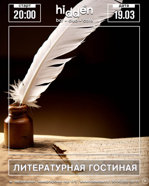 Литературная гостиная Дмитрия Кравченко в Hidden Bar (Москва) — камерный поэтический вечер в центре города. Современная поэзия, живое слово и атмосфера уютной встречи без сцены и дистанции.