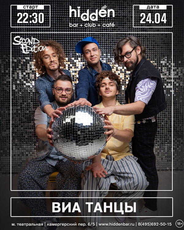 Приходи потанцевать под ВИА Танцы, насладись живым звуком, атмосферой и настоящей энергией сцены.