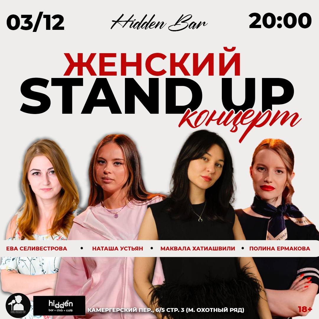 На одной сцене — 4 потрясающие девушки-комики, каждая со своей неповторимой энергией, искренностью и остроумием.